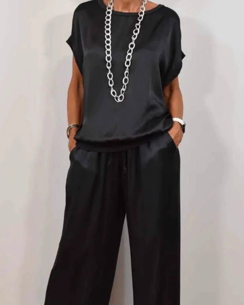 Drückt zeitlose Eleganz aus, dank des fließenden, seidigen Stoffes und des legeren Schnitts.
